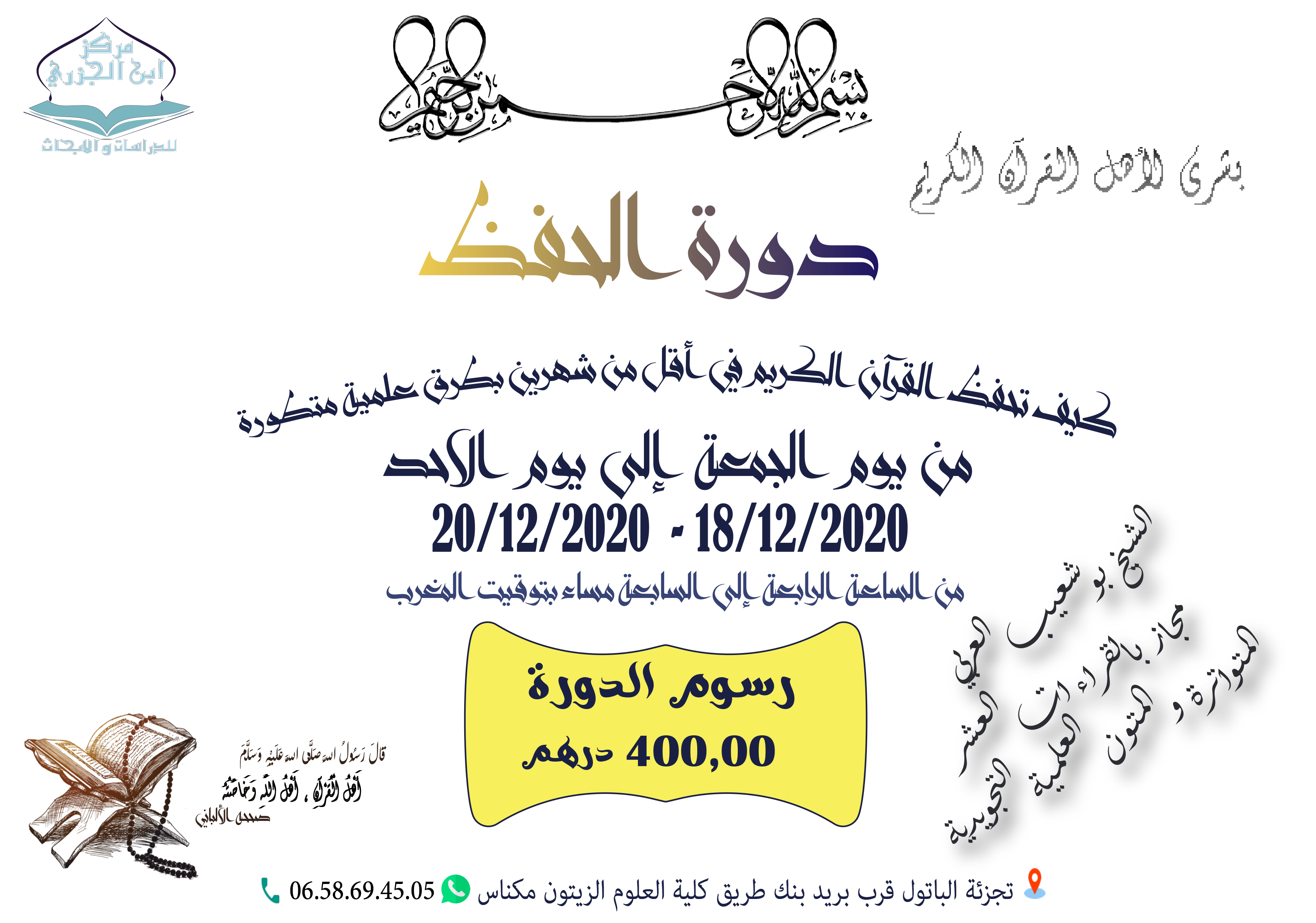 ينظم مركز ابن الجزري للدراسات والأبحاث دورة تكوينية في :