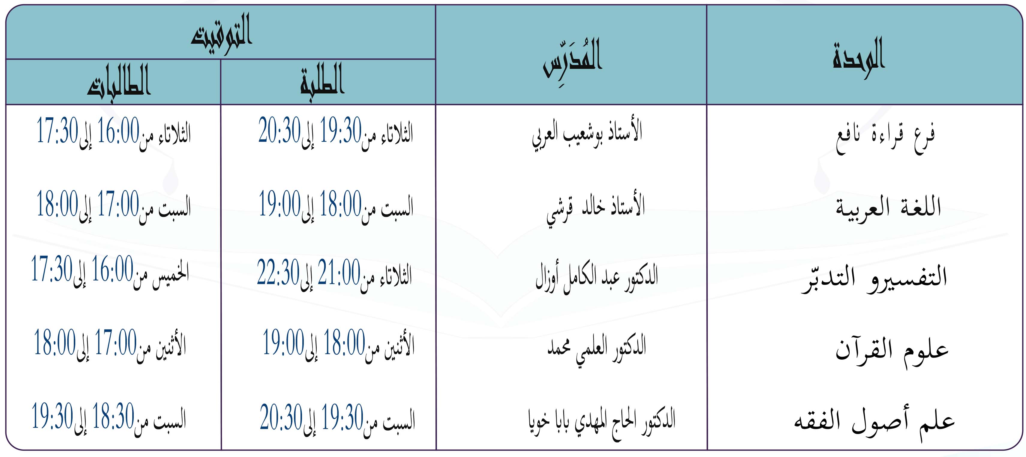 القراءات, سيبدأ التكوين إنطلاقا من الأسبوع المقبل و ذلك حسب البرنامج التالي :